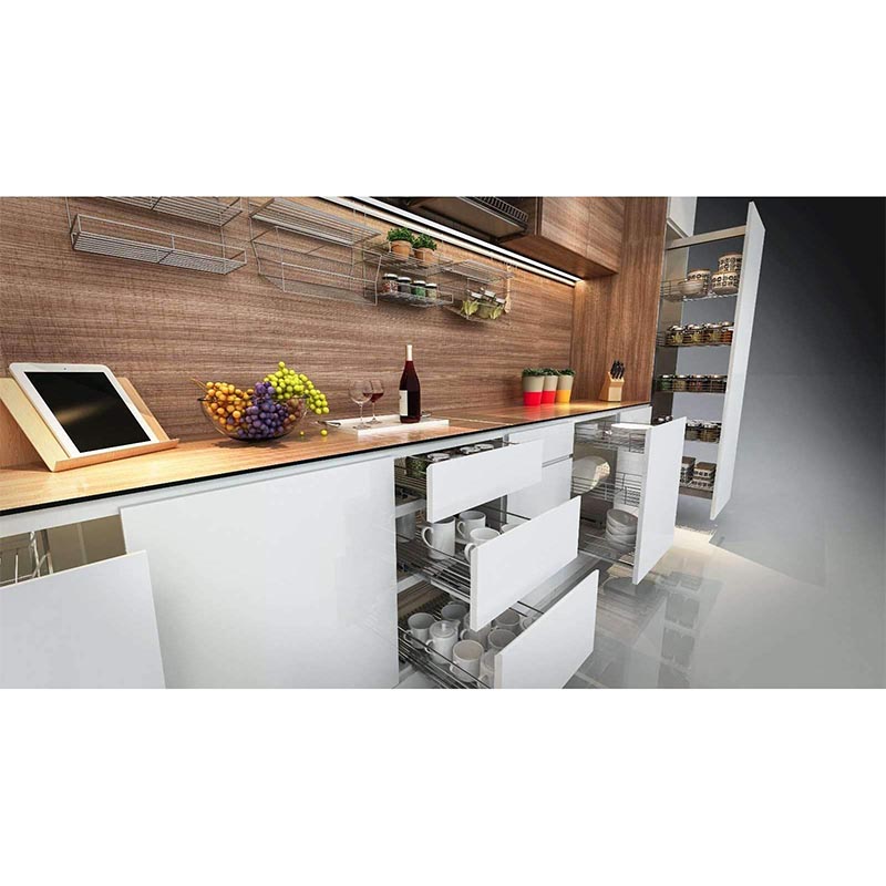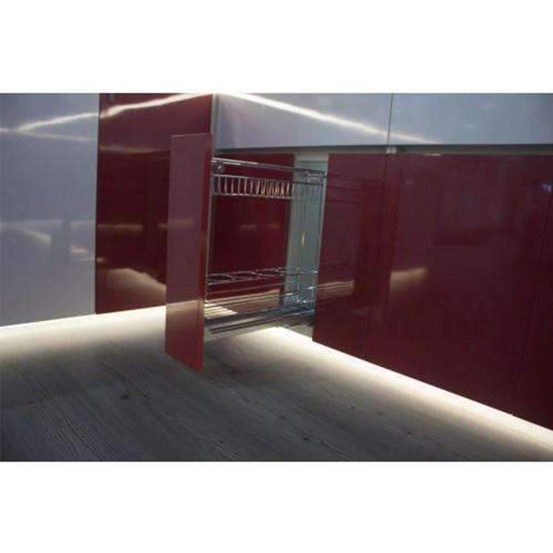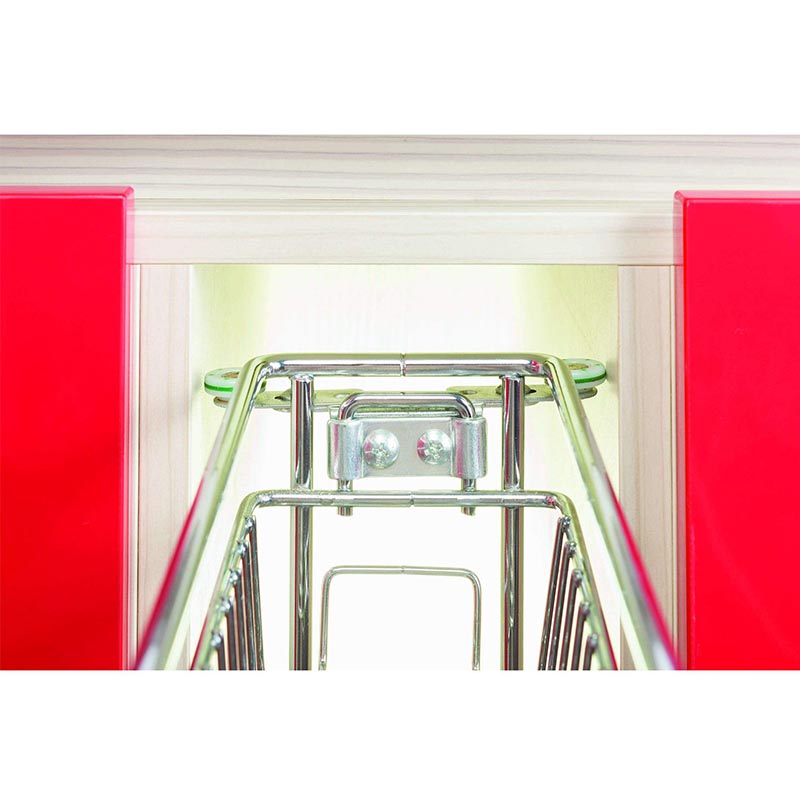 The basket has been tested under rigorous industry conditions to ensure that it won’t trigger any toxic reaction in the food items stored inside it. The slim basket can be pulled out with ease from the cabinet and after storing the desirable items, can again be pushed back elegantly. Optimization of limited space is achieved through the provision of two tiers. The brackets provided serve as protective guard and keep the items from falling down or rolling out. The wire frame of the basket has been made from high strength chrome coated stainless steel which makes it durable and reliable.