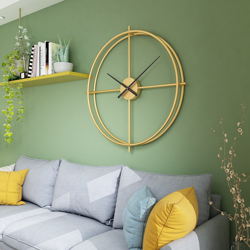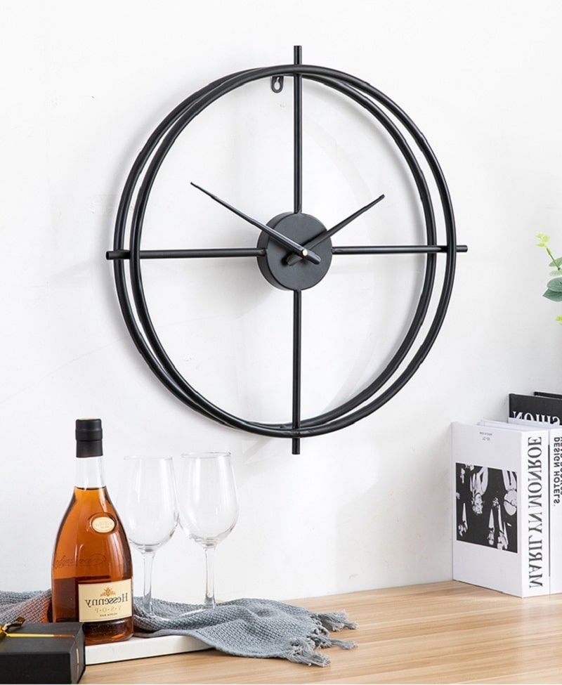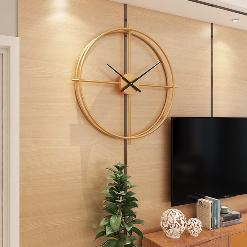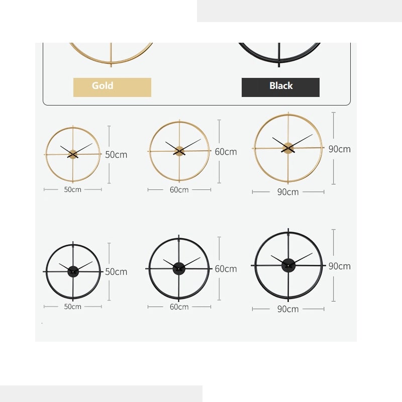 This mid-century styled clock features a slender circular outline with an open-through hoop. A timeless, classic accent piece that will add interest to your space. Available in gold and black and in different sizes.