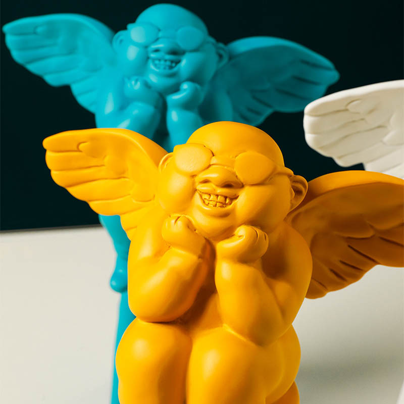 Introduce whimsical play to your room with this one-of-a-kind angel decor piece that adds an element of fun and bright colours. Display as a pair or individually.