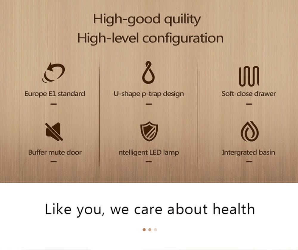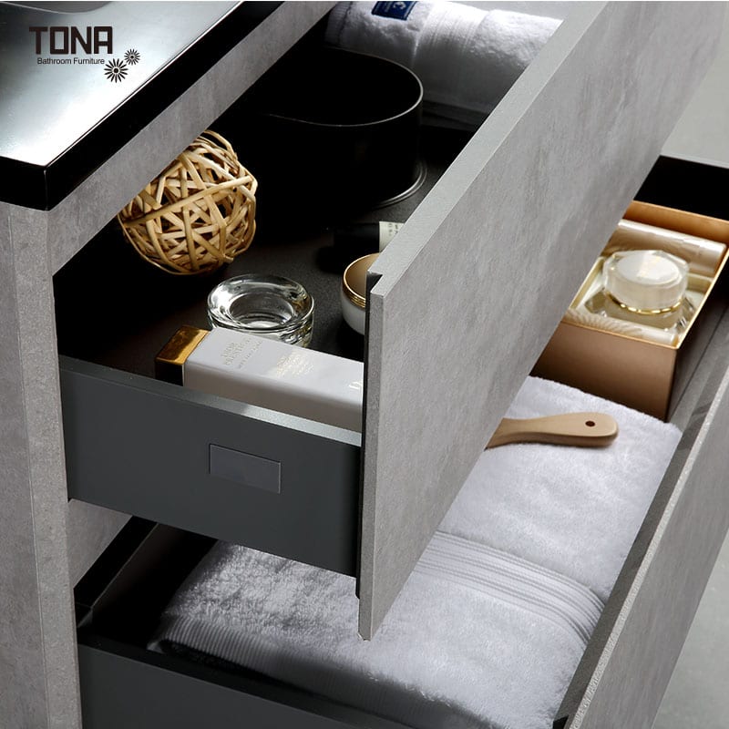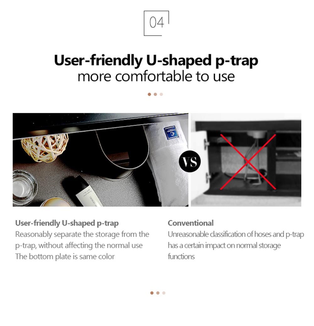 1. Cabinet: MFC,6562 C.Ash colour, ABS material ultra-thin U-shape p-trap,invisible handle, DTC silent sampling guide rail, wooden drawer sideboard