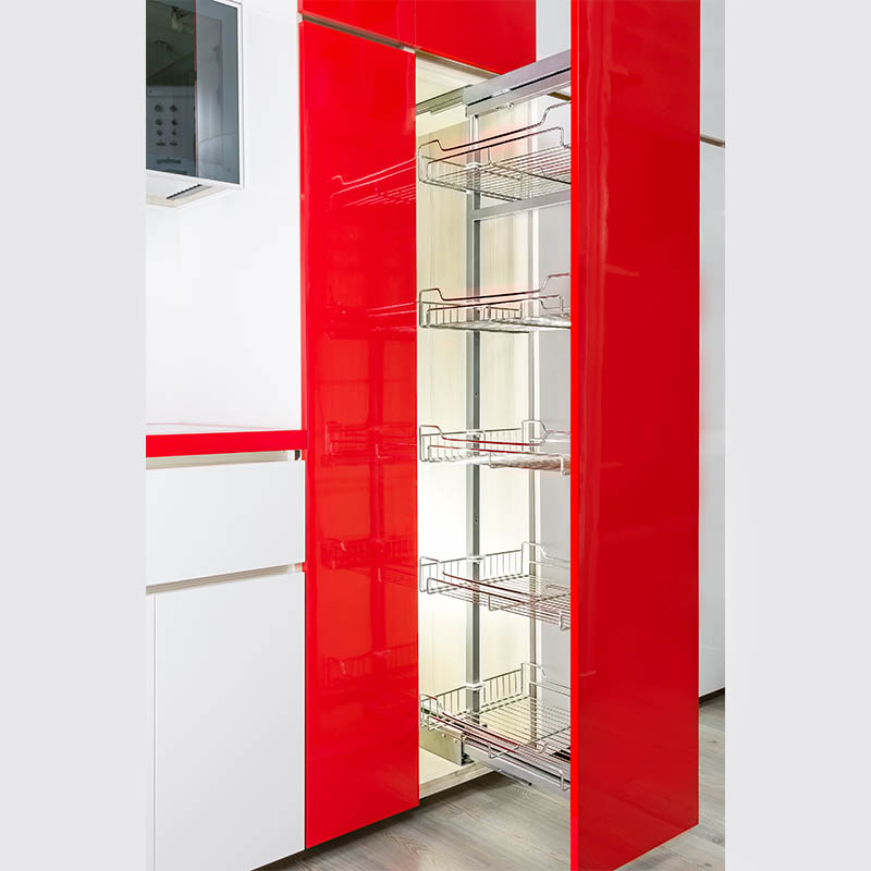 ● Excel soft-closing tall storage unit system comes with five baskets – the best choice amongst all tall storage units systems. This soft-closing tall unit storage system is fuss-free when it comes to maintenance, with long-lasting mechanisms to ensure durability.