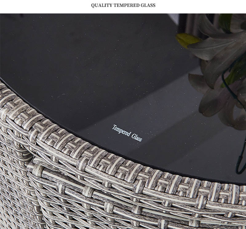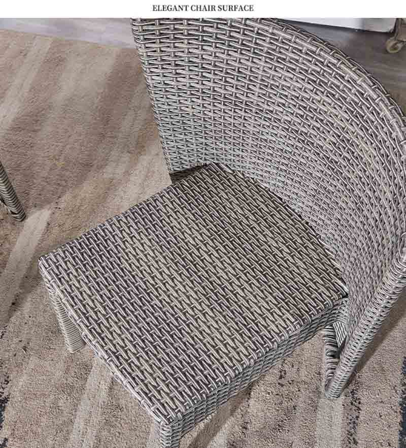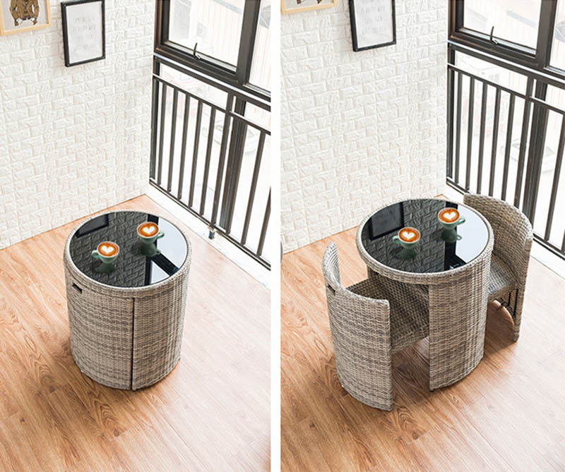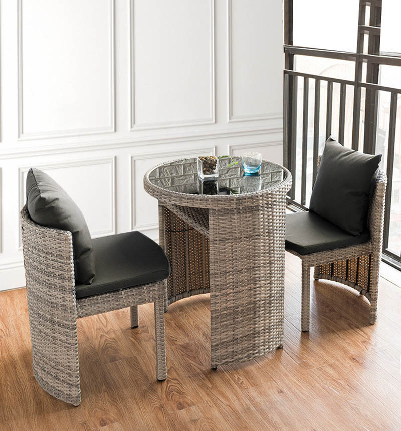 This outdoor set boasts an arc design, with chairs that can be tucked away under the table to save space. Its design combines natural textures complete with plush outdoor cushions for you and your companion to unwind.