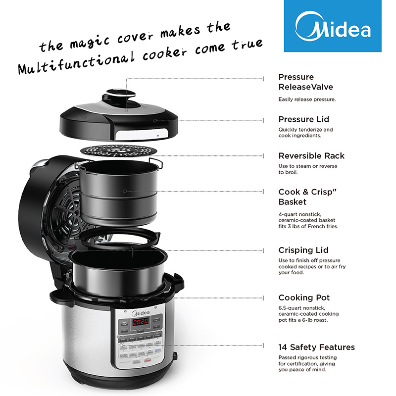 Multi-function for saving space and money, enjoying more type of foods by one machine Preset programs make cooking easy and professional Delay & Keep warm function for more convenient life