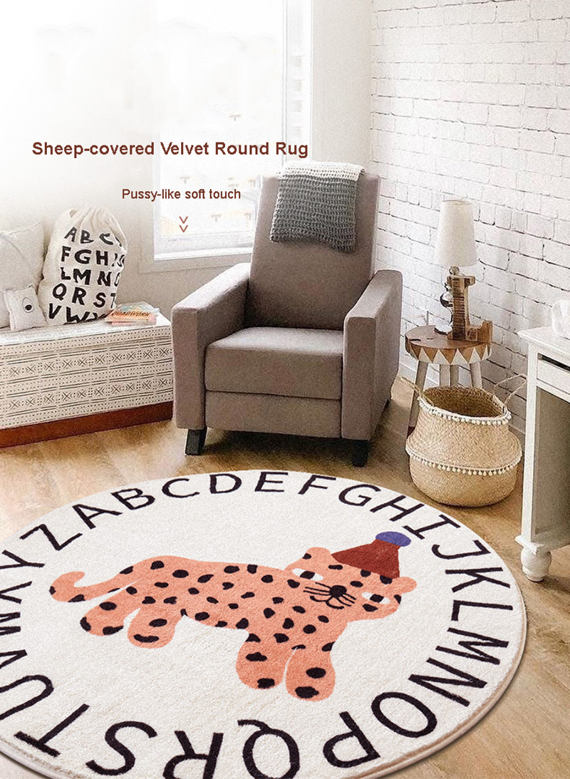 Children Bedroom Alphabet Animal Circular Carpet Rug