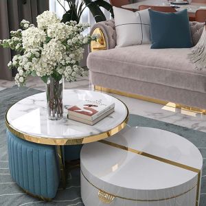 Add interest to your living room with this set featuring multiple handles for functional and decorative purposes. Thin carbon legs contrast the body of the wooden furniture set to give this set a distinct, one-of-a-kind look that sets your space apart.
