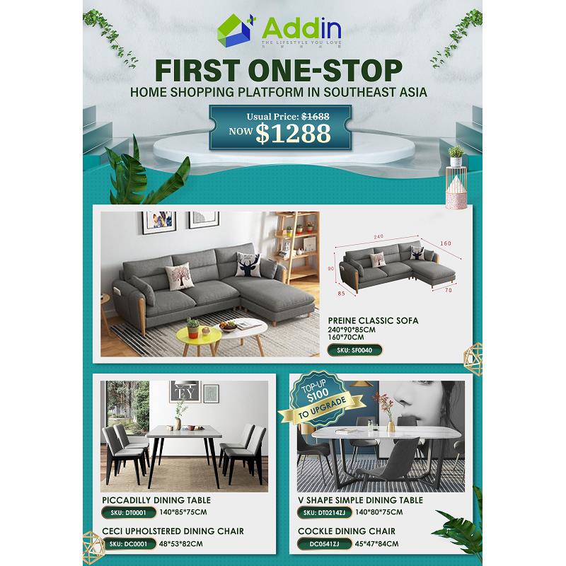Shop a complete look with a timeless sectional sofa and dining table set with dining table and chairs. Upgrade your dining set to a table with marble-like finish and sleek dining chairs with a $100 top up to elevate your space further.