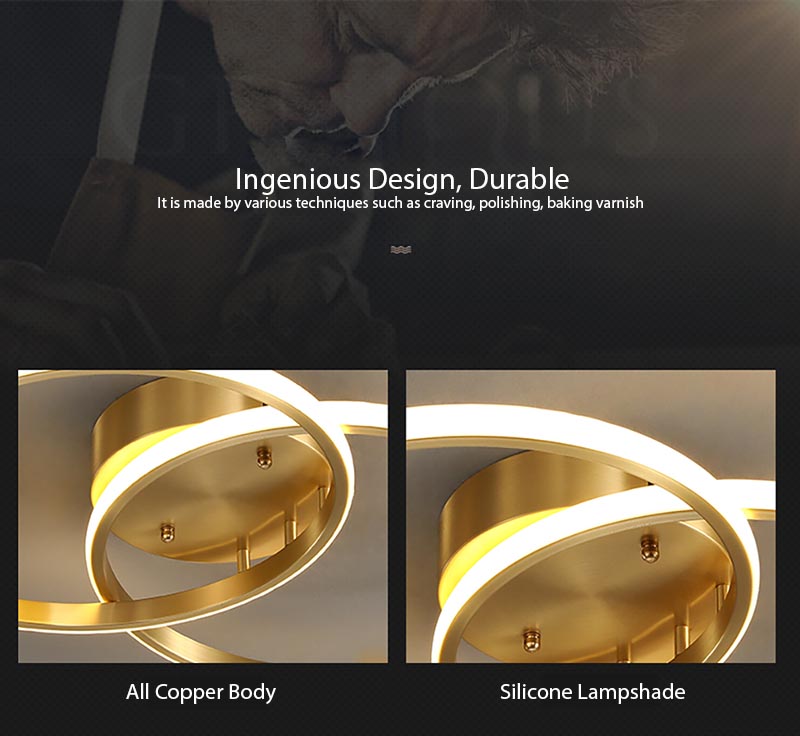 This style-centric ceiling light adds appeal to a room. Spotting a classy, timeless look, this design blends well with any interior design style, featuring copper accents and LED lighting.
