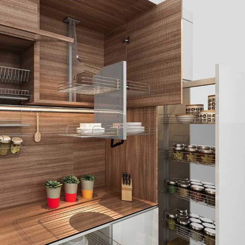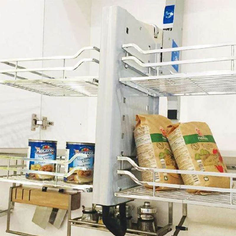 Free lift, allowing the use of cabinet space to become accessible. User-friendly design and according to the weight of storage. Suitable for storing spices, tableware, non-frozen food or dried food. Maximum load weight is at 18kg.