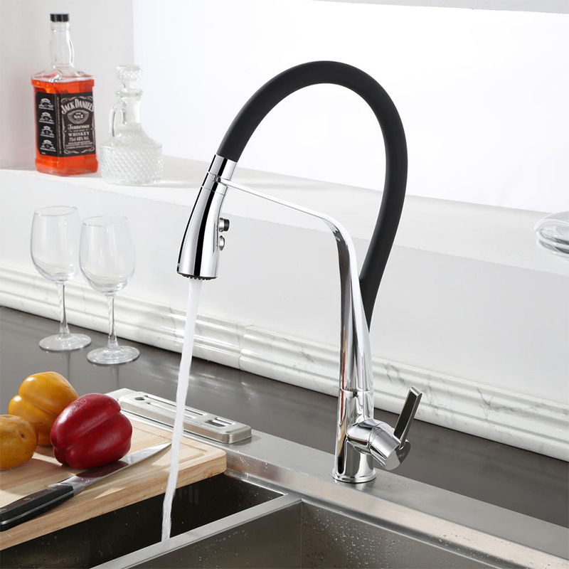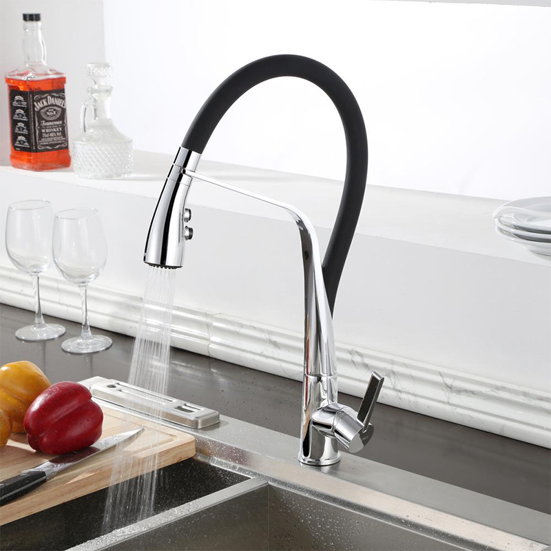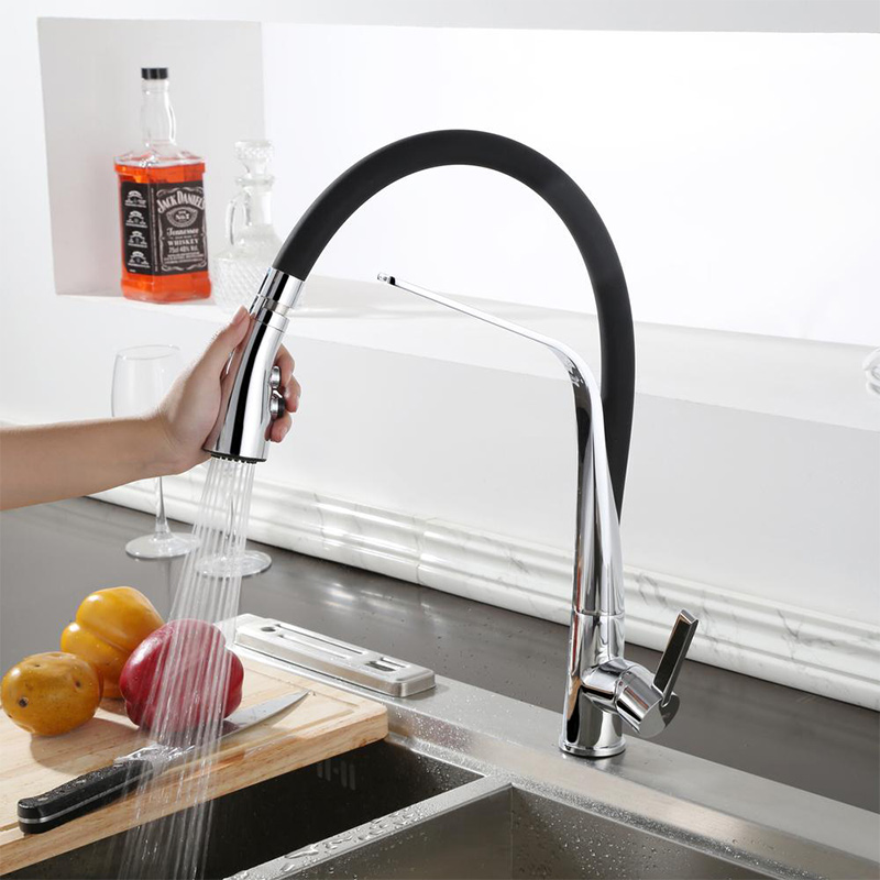 Pull-Out Kitchen Mixer in Black Spout and Chrome for a Classy Accent in the Kitchen