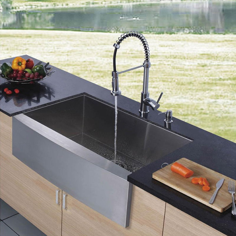 Seal a modern farmhouse look with this sleek stainless steel apron-front kitchen sink. This is a coveted feature in modern farmhouse kitchens – perfect for adding a distinctive look.