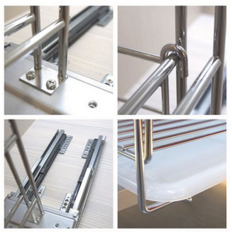 ● This removable pull out basket is a space-saving product with a soft-closing feature. Complete with a polished chrome finish. The sink hand removable pull out basket from Excel is a handy and elegant kitchen accessory that allows you to keep utensils and fragile bottle optimally.