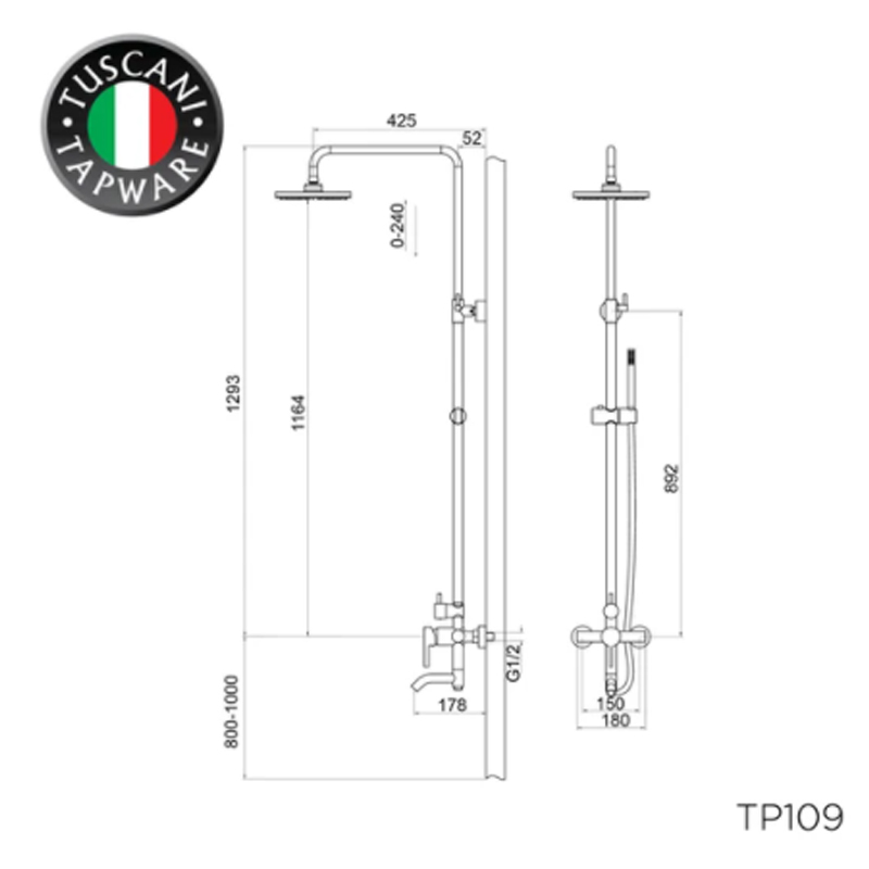 Tuscani PULIZA Solid Brass Bath & Shower Column Mixer TP109